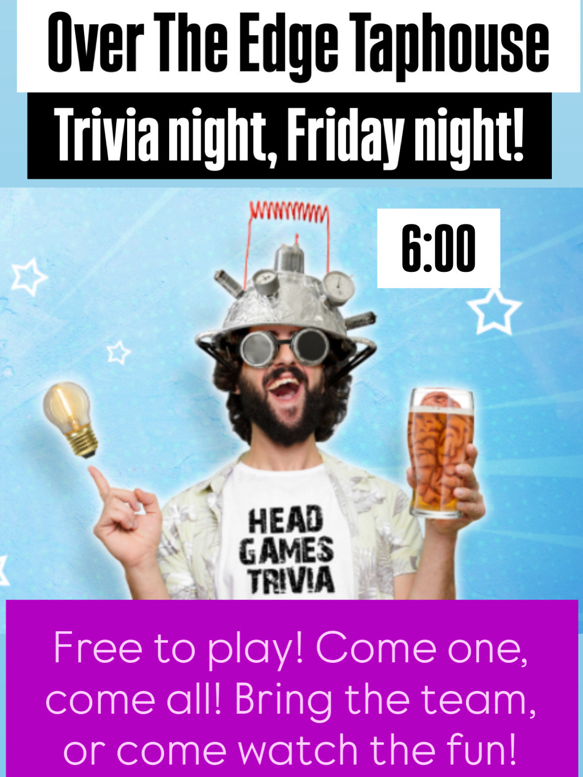 Head Games Trivia on Friday nights. Eat. Drink. Think. Win!